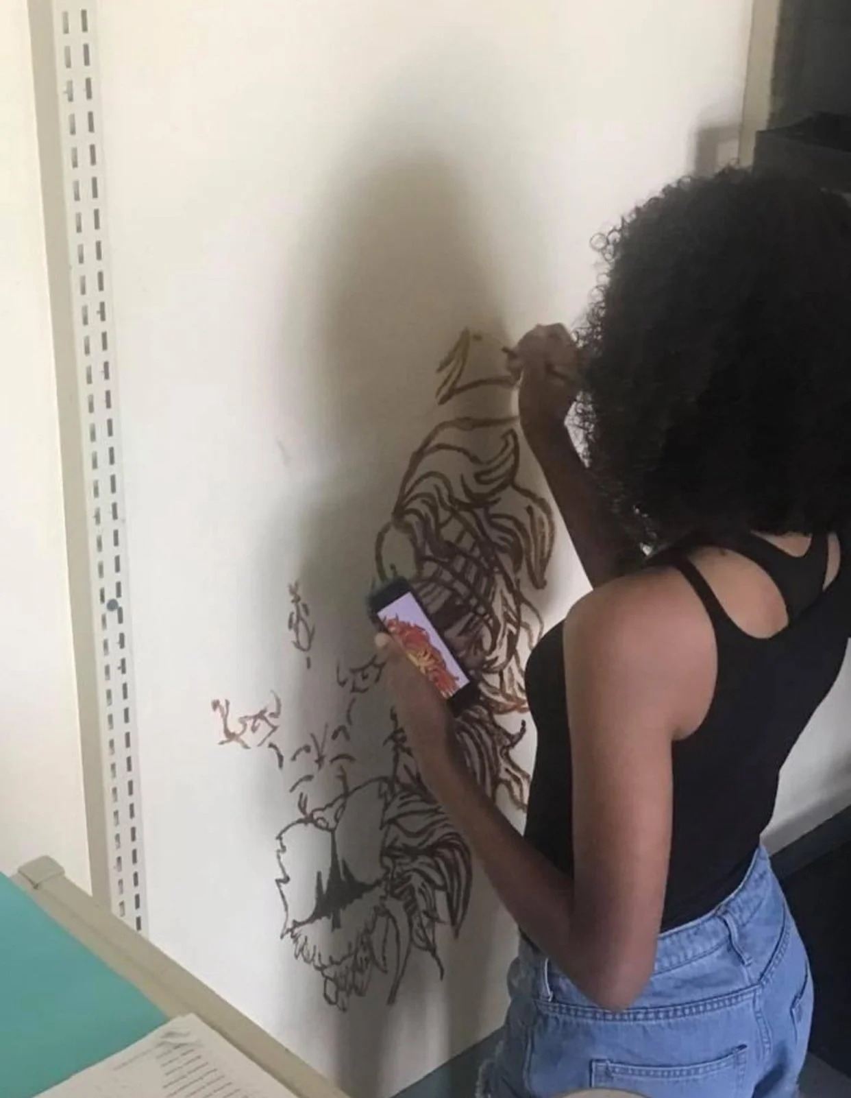 Me, at 13 years old, painting a mini mural on a middle school teachers wall