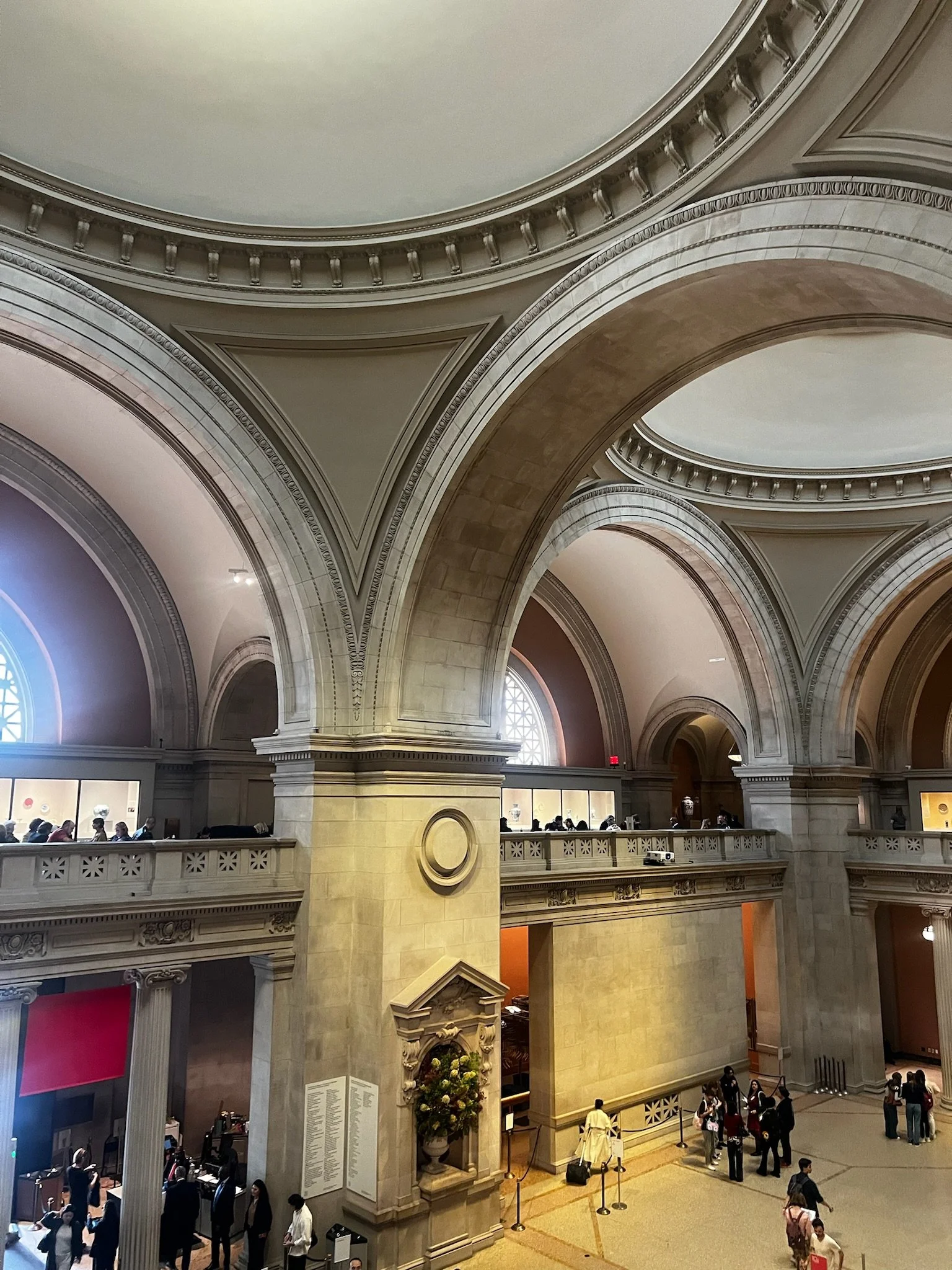The architecture of the Metropolitan Museum of Art in New York is truly special, blending space, light, and design in a way that makes your visit feel like an immersive experience. One of the most amazing aspects of the museum is how it uses natural light. The large windows let in light in a way that changes depending on which part of the museum you are in. For example, in the Egyptian Art section — which is my favorite — the rooms are darker, with low lighting, to match the mysterious and ancient feeling of the artifacts. The dim lighting creates a calm and almost sacred atmosphere, making you feel like you are stepping into a different time. Some rooms even feel like you're in a cave, adding to the sense of history and reverence for the pieces on display. The lighting is carefully placed, so certain objects are highlighted and stand out, creating a sense of awe.