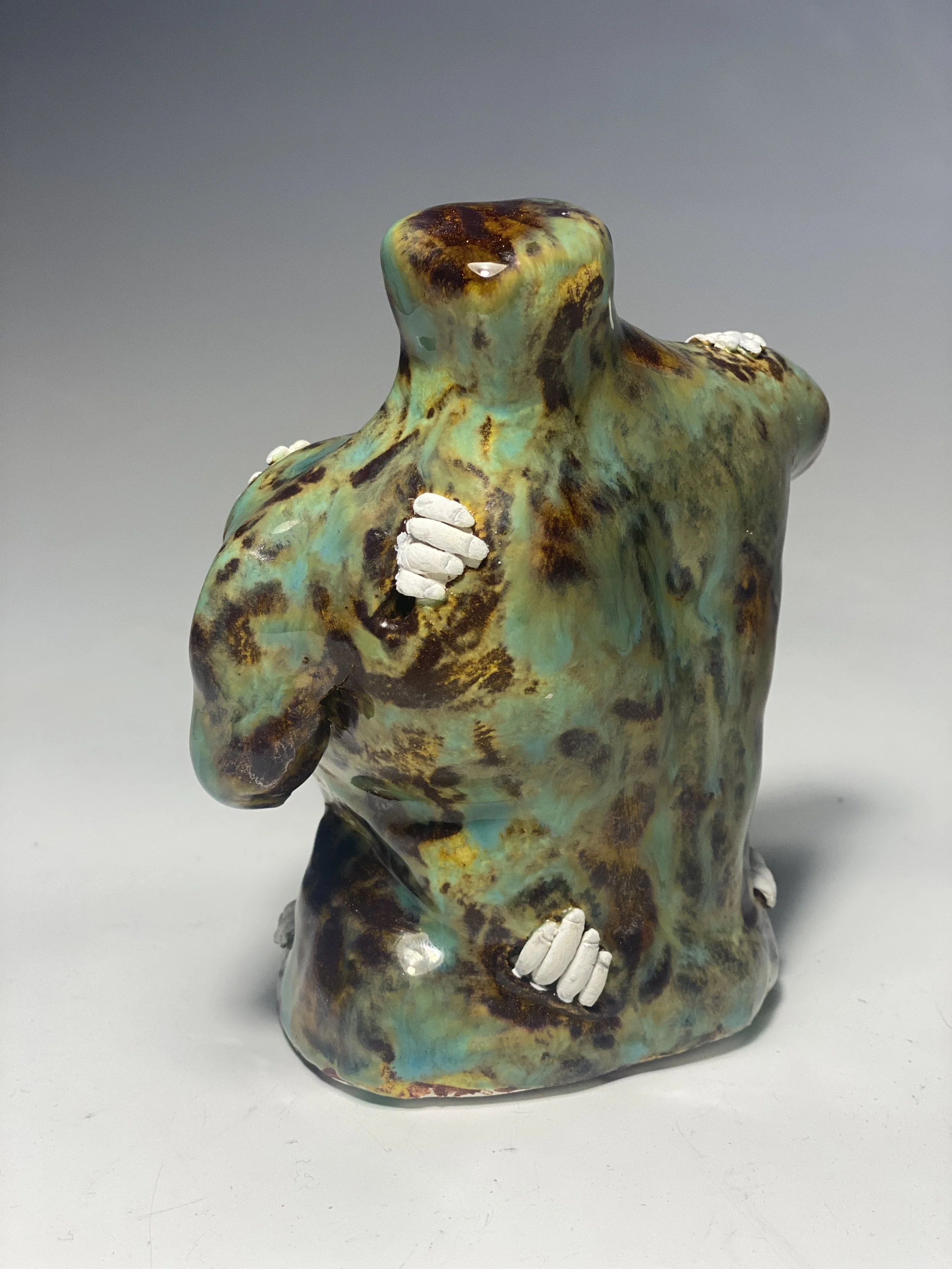 This Earthenware ceramic piece, with its handmade glaze, represents a being who finds beauty on the outside by working on themselves on the inside. The smooth texture and rich glaze show how inner healing can shine through outwardly. It reflects the idea that as we grow and heal inside, our true beauty shows on the outside.